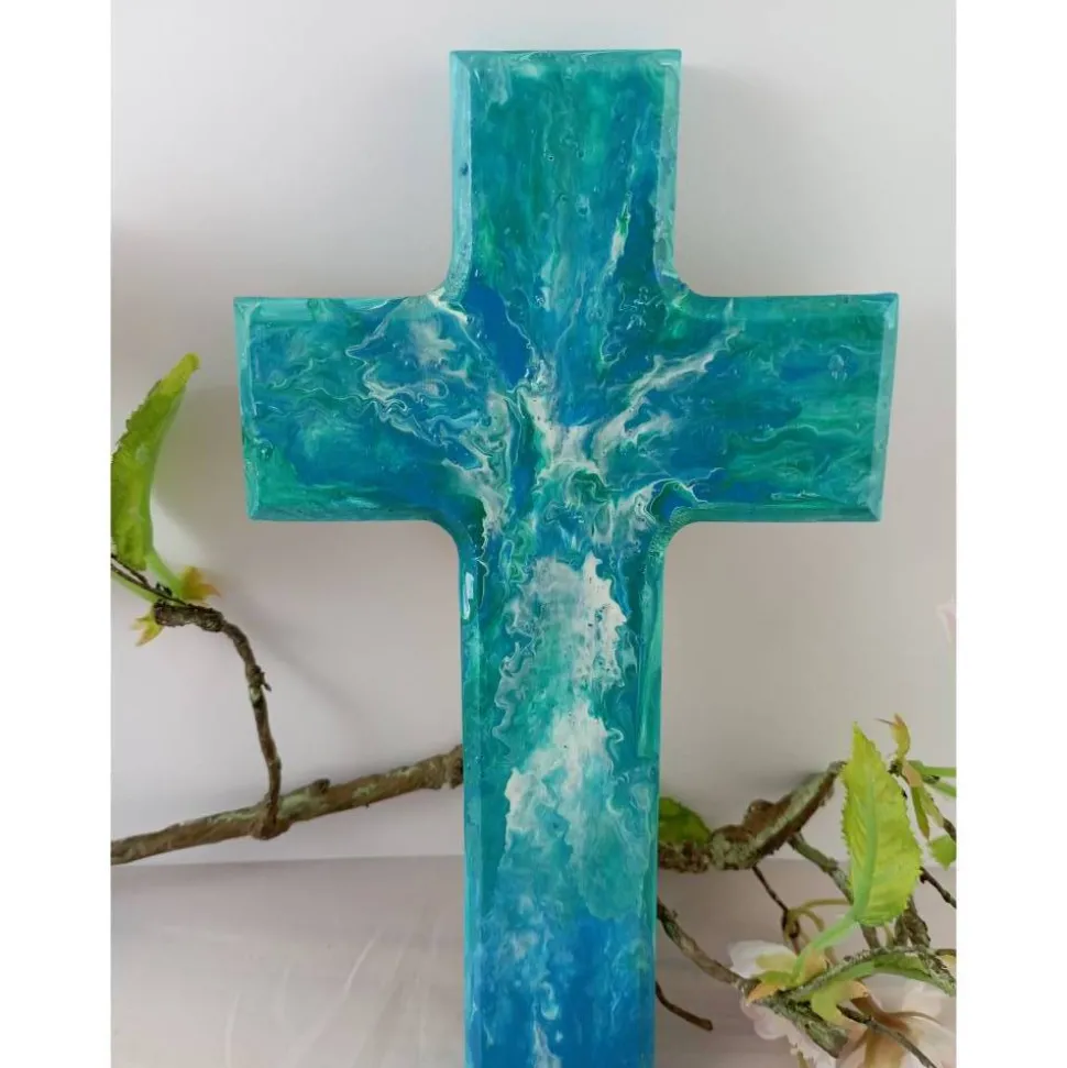 Taufkreuz ist ein sehr persönliches Geschenk, z.B. vom Taufpaten, den Großeltern oder den Eltern selbst.Jedes Taufkreuz wird mit viel Liebe zum Detail mit Acrylfarbe Fließtechnik angefertigt; es kann am Tauftag mit in die Kirche genommen und geweiht werden.