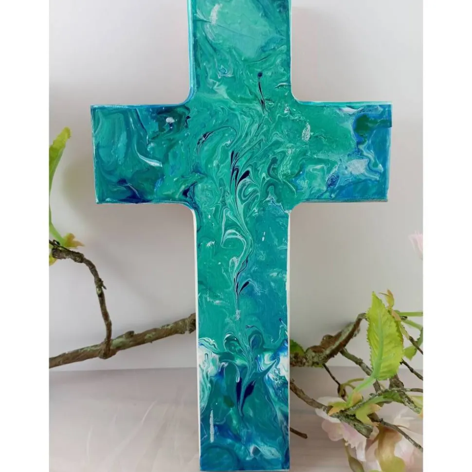 Taufkreuz ist ein sehr persönliches Geschenk, z.B. vom Taufpaten, den Großeltern oder den Eltern selbst.Jedes Taufkreuz wird mit viel Liebe zum Detail mit Acrylfarbe Fließtechnik angefertigt; es kann am Tauftag mit in die Kirche genommen und geweiht werden.