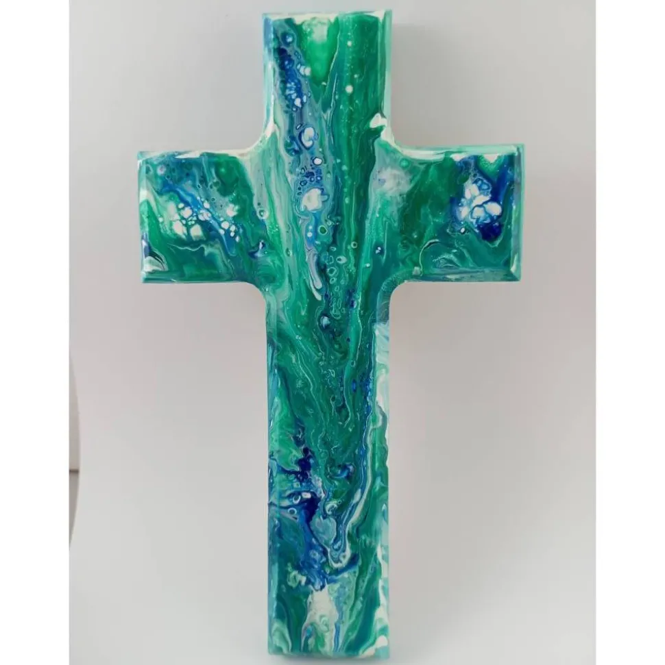 Taufkreuz ist ein sehr persönliches Geschenk, z.B. vom Taufpaten, den Großeltern oder den Eltern selbst.Jedes Taufkreuz wird mit viel Liebe zum Detail mit Acrylfarbe Fließtechnik angefertigt; es kann am Tauftag mit in die Kirche genommen und geweiht werden.