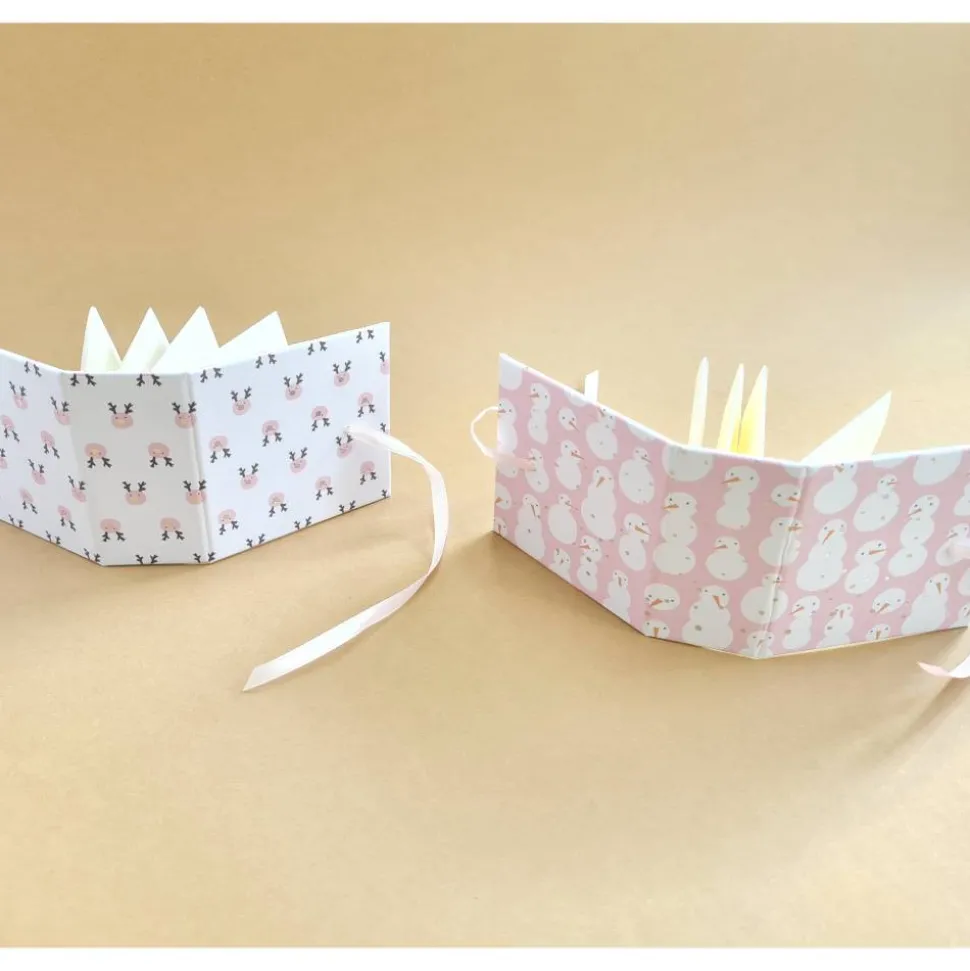 Die Hardcover-Decke des Teebeutelbuches besteht aus 1,5mm Buchbindergraupappe, überzogen mit einem hübschen weihnachtlichen Designkarton mit Schneemännern oder Rentieren. So kann in der Handtasche auch ruhig mal etwas schwereres darauf liegen, es verknickt nichts.