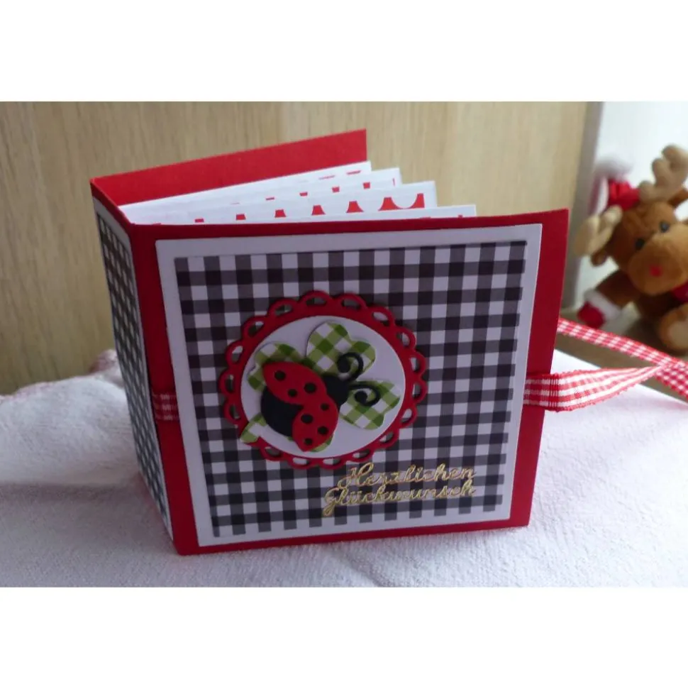 Das Büchlein ist aus einen roten Fotokarton und mit bedruckten Motivkarton gearbeitet.