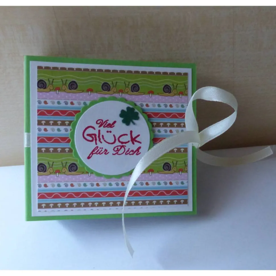 und mit dem Spruch ,Viel Glück für Dich, verziert mit kleinen Kleeblättern.