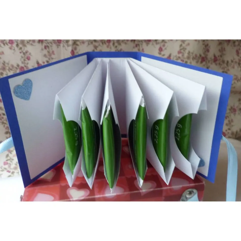 Natürlich können Sie die einzelen Fächer auch anders füllen,z.b. mit kleinen Gutscheine,Liebesbriefe,Gedichte Geldscheine…