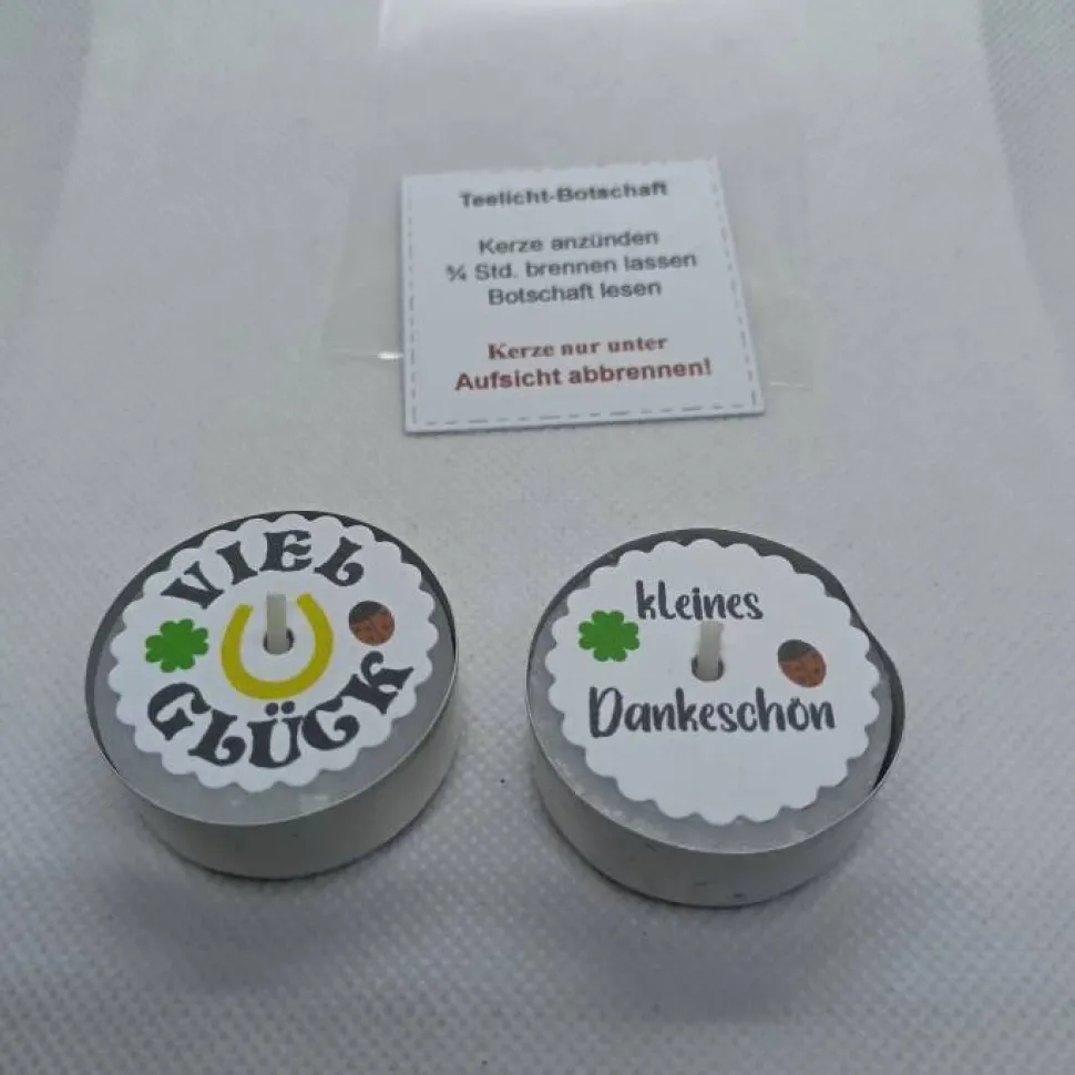 In der Kerze befindet sich ein kleiner Karton mit Motiv/Worten wie unten ausgesucht.