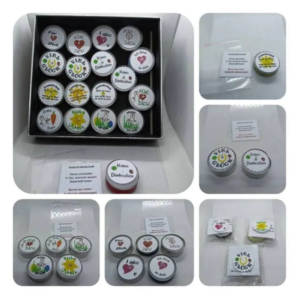 Jedes Teelicht befindet sich zusammen mit der Anleitung in einem kleinen Tütchen verpackt.