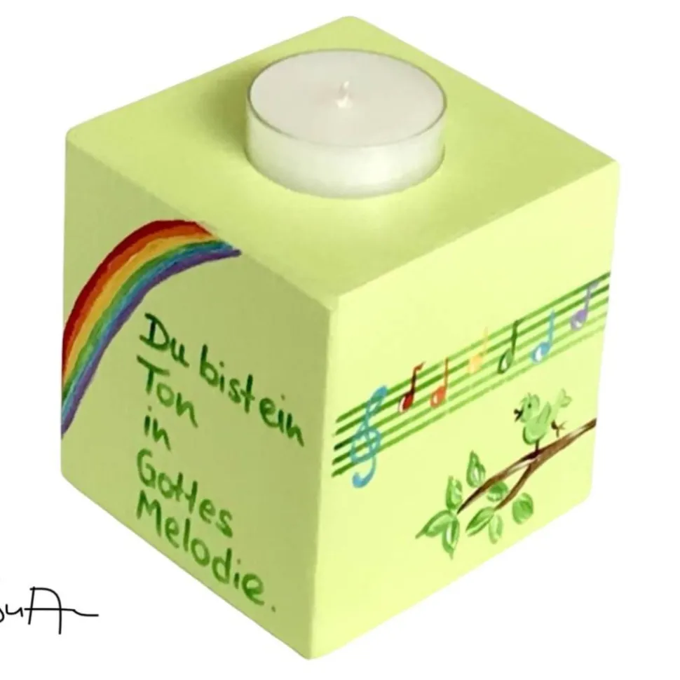 Jeder Kerzenwürfel wird nach dem Kauf individuell für Sie bemalt. Die Teelichthalter können mit Namen,Daten, christlichem oder persönlichem Vers personalisiert werden. Farbwünsche werden gerne berücksichtigt.