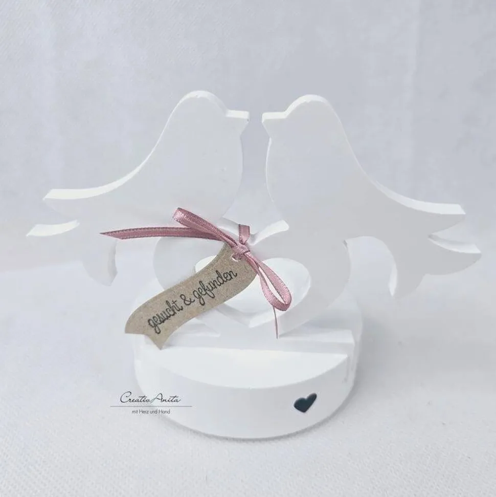Den Teelichthalter erhälst du hier als komplettes Set bestehend aus der runden Grundplatte und dem Vogelpaar-Einschieber.
