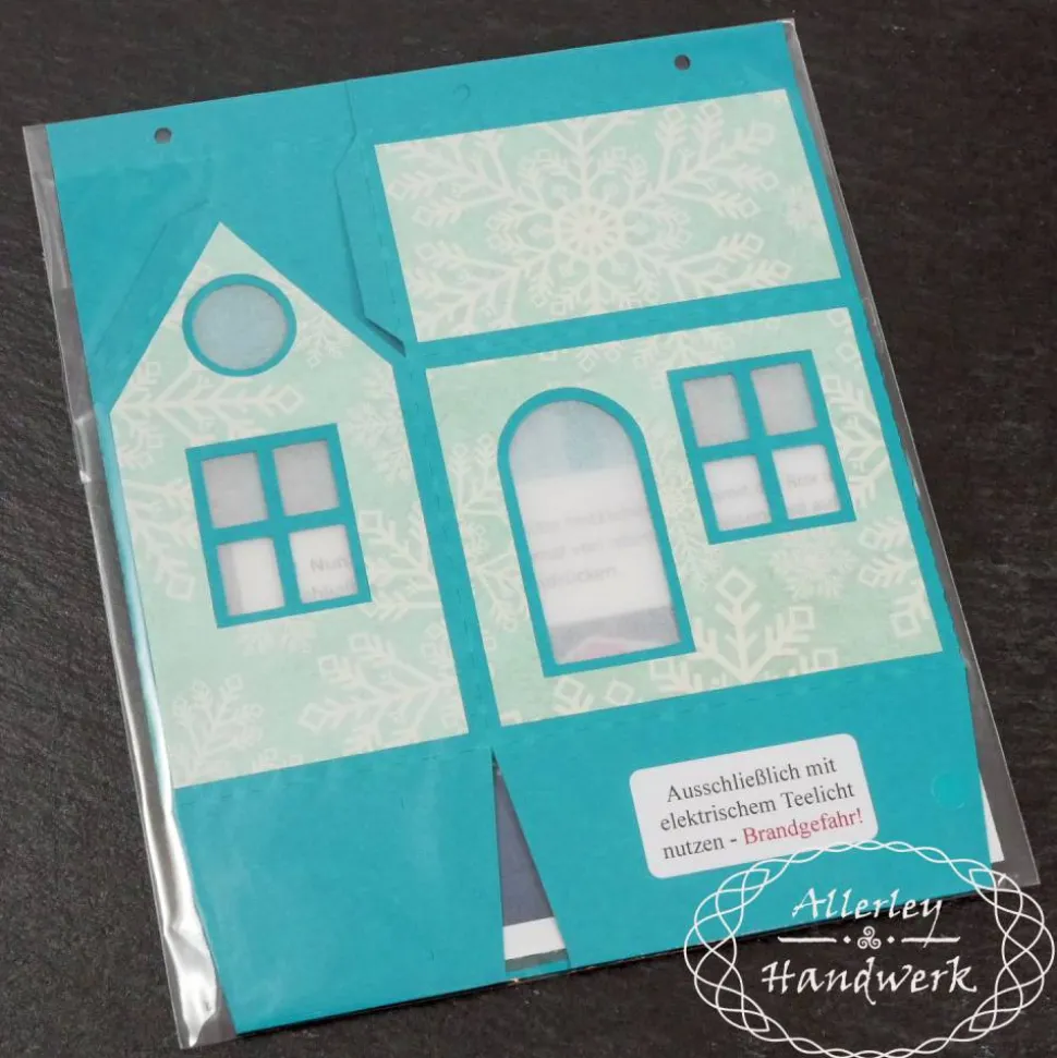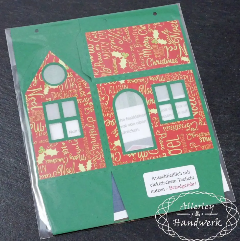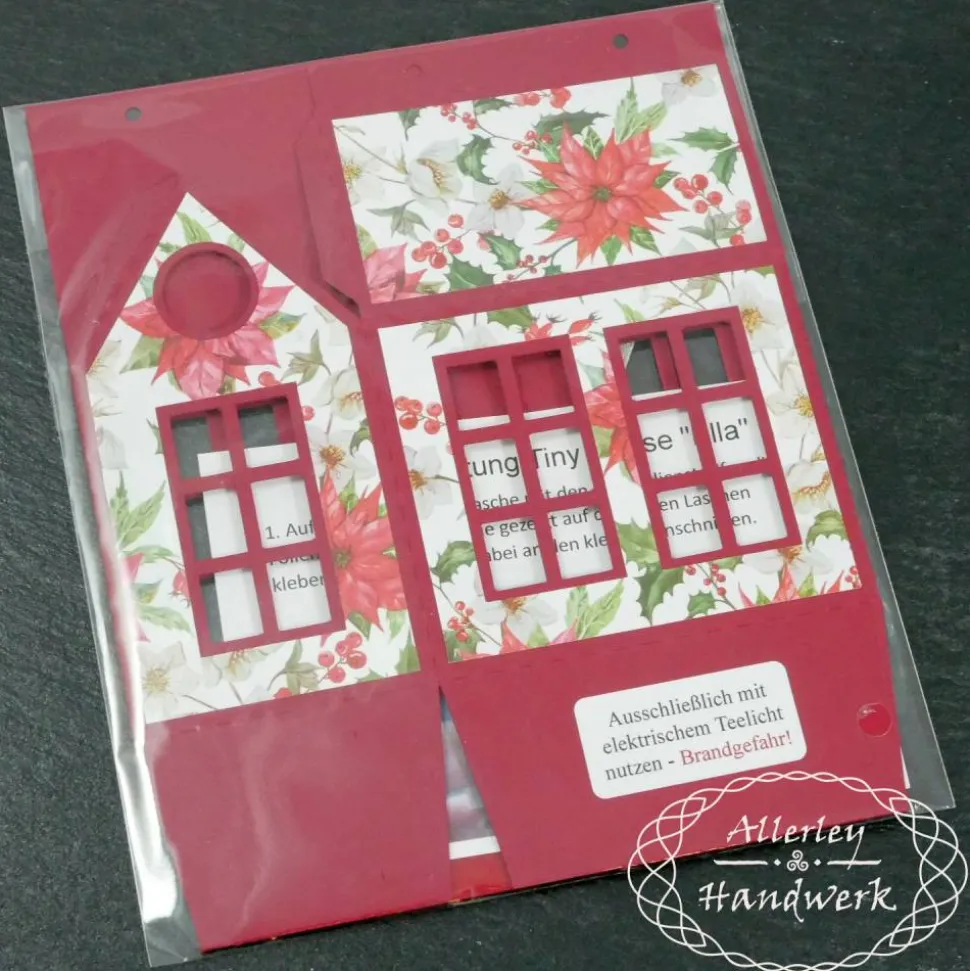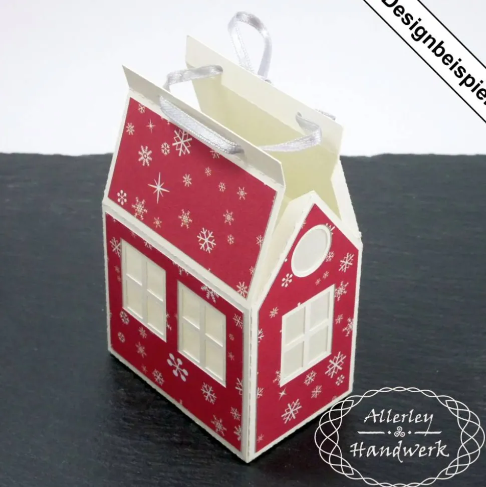 Die Box wird flach geliefert, eine Anleitung zum Zusammenkleben des Bodens sowie das Bindeband liegen bei.