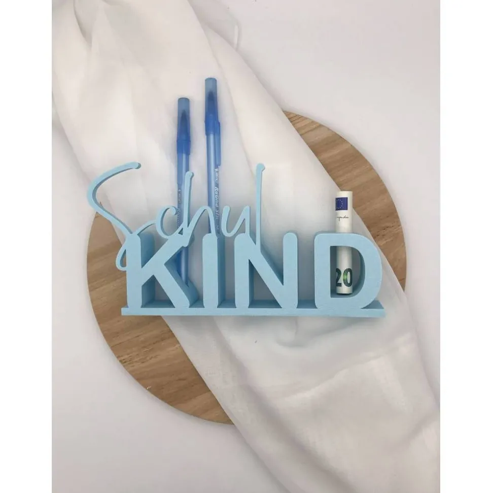 Tischaufsteller „Schulkind“ – personalisiert – mit Reagenzglas für Geldgeschenk & Stifte – Einschulung Geschenk Deko