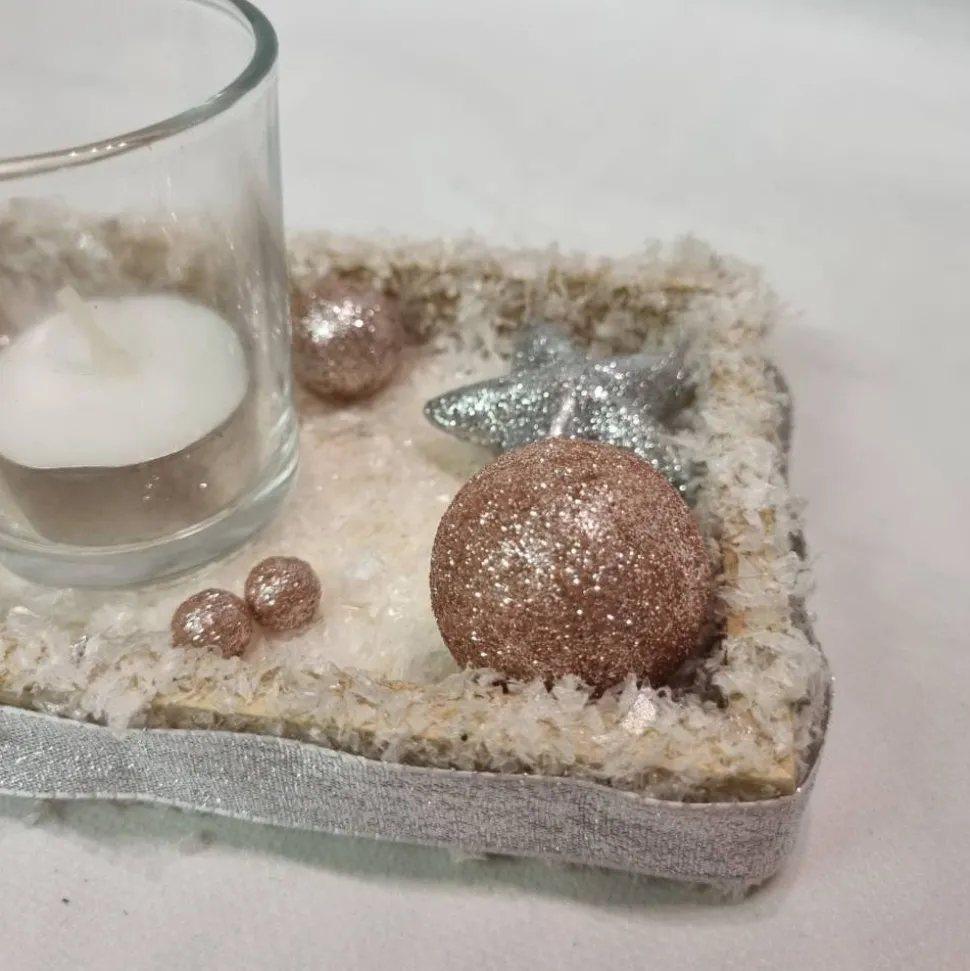-Dekoschnee (geklebt). Zusätzlicher loser Dekoschnee wird zum Auffüllen der Lücken mitgeliefert.