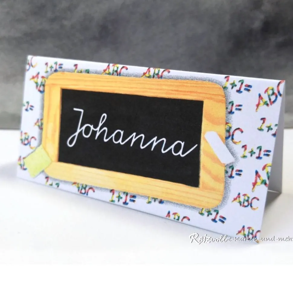 Gestalte deine Einschulungsfeier einzigartig mit personalisierten Tischkarten im Schiefertafel-Design!