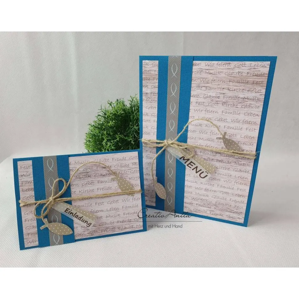 Tischkarte „Fische“ zur Kommunion / Konfirmation / Firmung