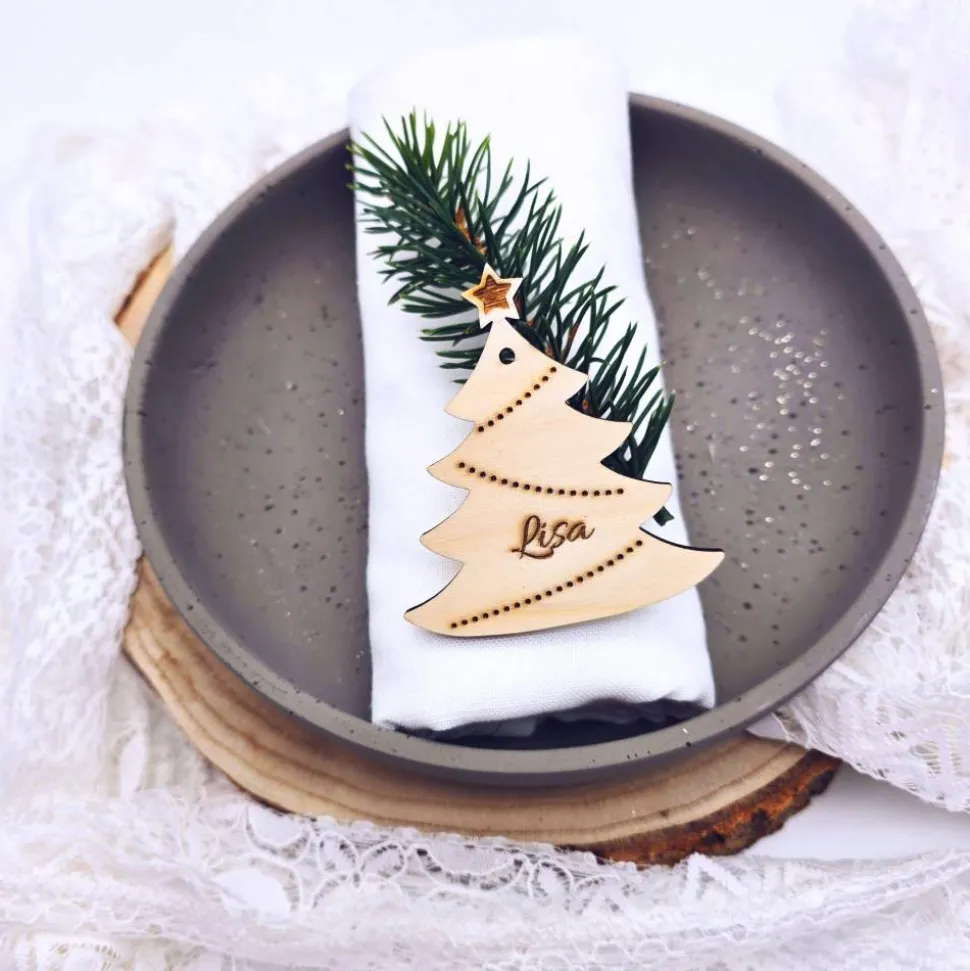 Mach die Weihnachtsfeier mit diesen schönen personalisierbaren Tischkarten aus Pappelsperrholz besonders. Diese vielseitigen verwendbaren Namensschilder eignen sich ideal als Platzkarten für das Weihnachtsfest, als dekorative Geschenkanhänger oder einfach als stilvolle Deko für deine Weihnachtsfeier. Jedes Stück wird sorgfältig graviert.