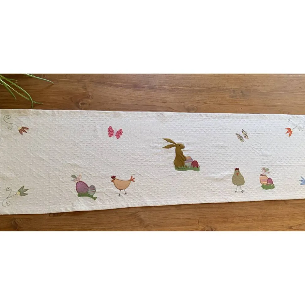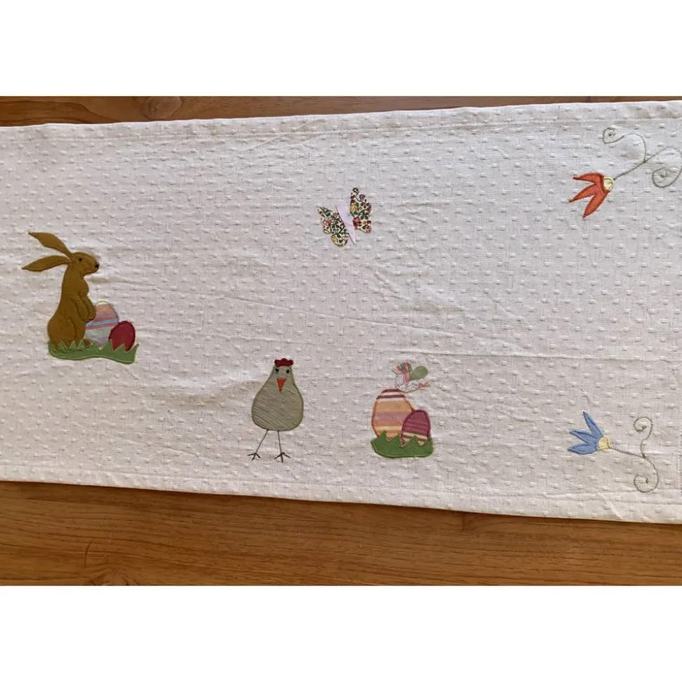 Tischläufer für die Osterzeit und den Frühling mit aufwendigen, zahlreichen Applikationen,
