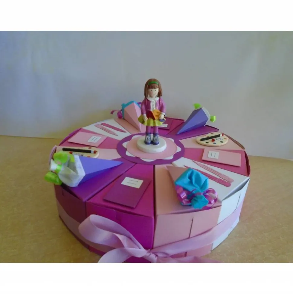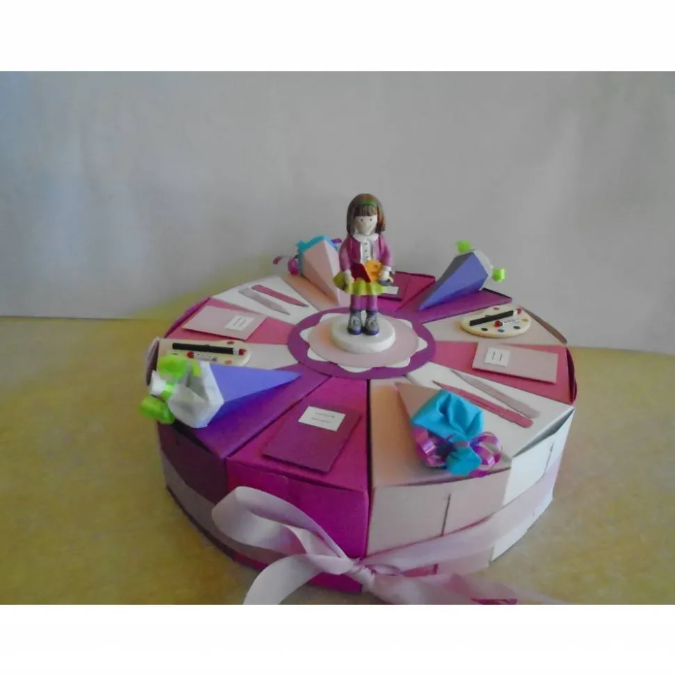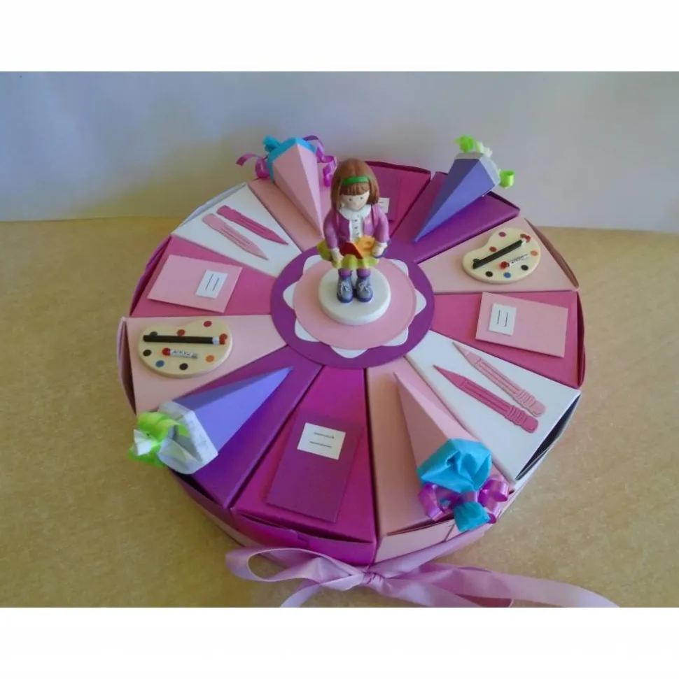 Hier seht ihr eine schöne Torte zur Einschulung mit 12 stücken für ein Mädchen…diese Torte ist als Geldgeschenk,von Mutter,Vater,Oma,Opa,Patenonkel,Patentante geeignet…