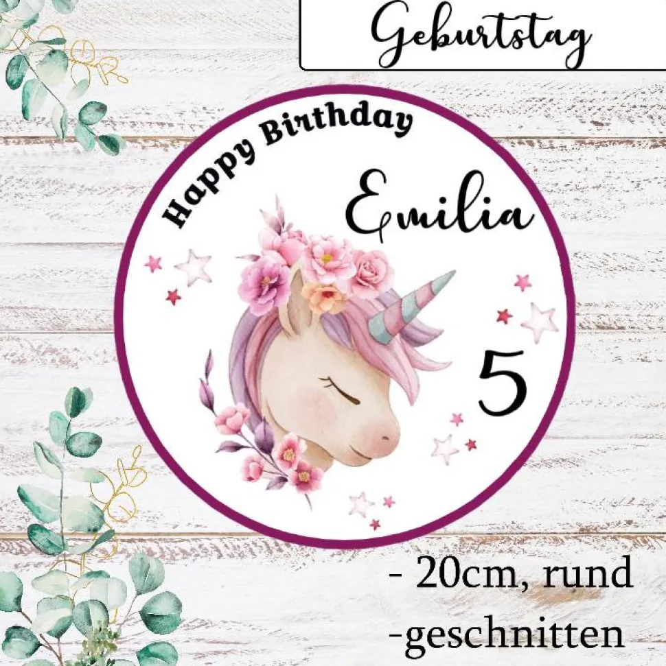 Tortenaufleger Einhorn mit Name und Zahl