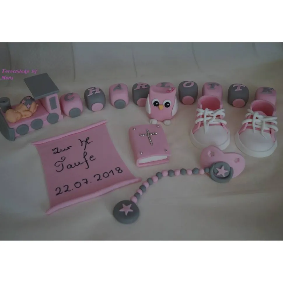 In dieser Auktion bekommt ihr eine Tortendeko für die Taufe, Geburt, Geburtstag. Taufdeko .Der Preis gilt für alles was Sie auf den Bildern sehen.Preis gilt bei der Lok für einen Namen von 4 bis 5 Buchstaben, jeder weitere Anhänger mit Buchstabe 0,80 cent . Andere Farben sind möglich und auch für Mädchen.