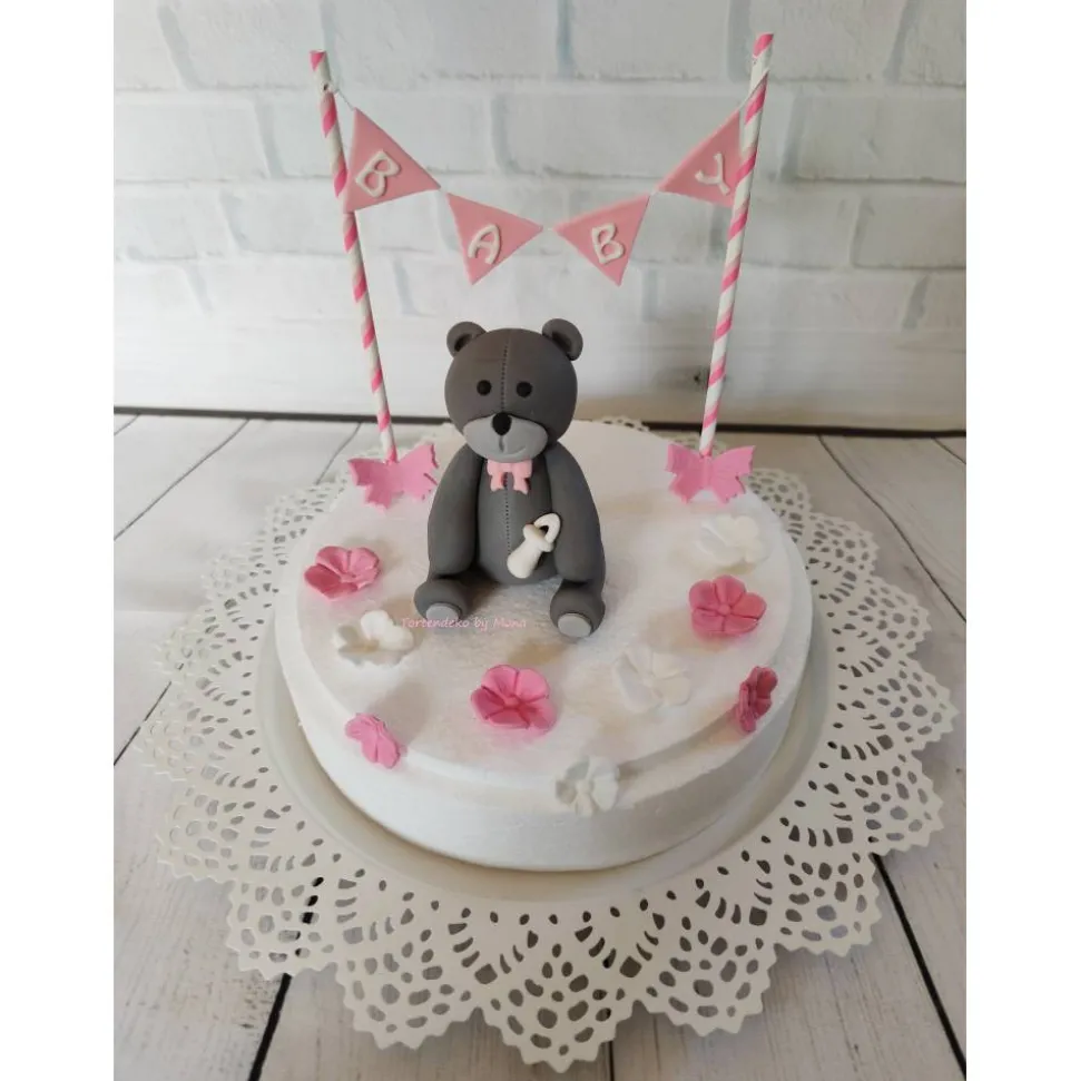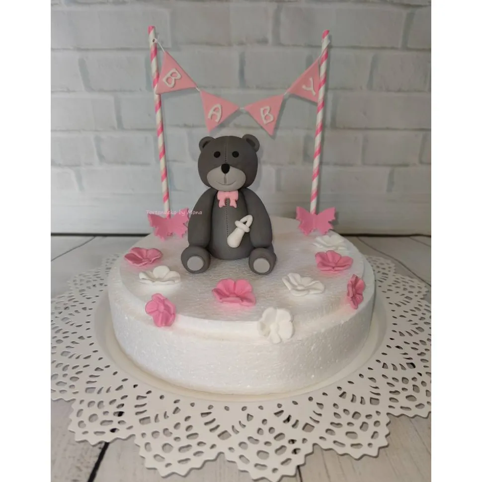 Hier bekommt ein Deko für eine Torte zur Geburt, Taufe, Geburtstag . Teddy Lilli könnt ihr auf die Torte setzen , sie kommt mit allen was ihr braucht.