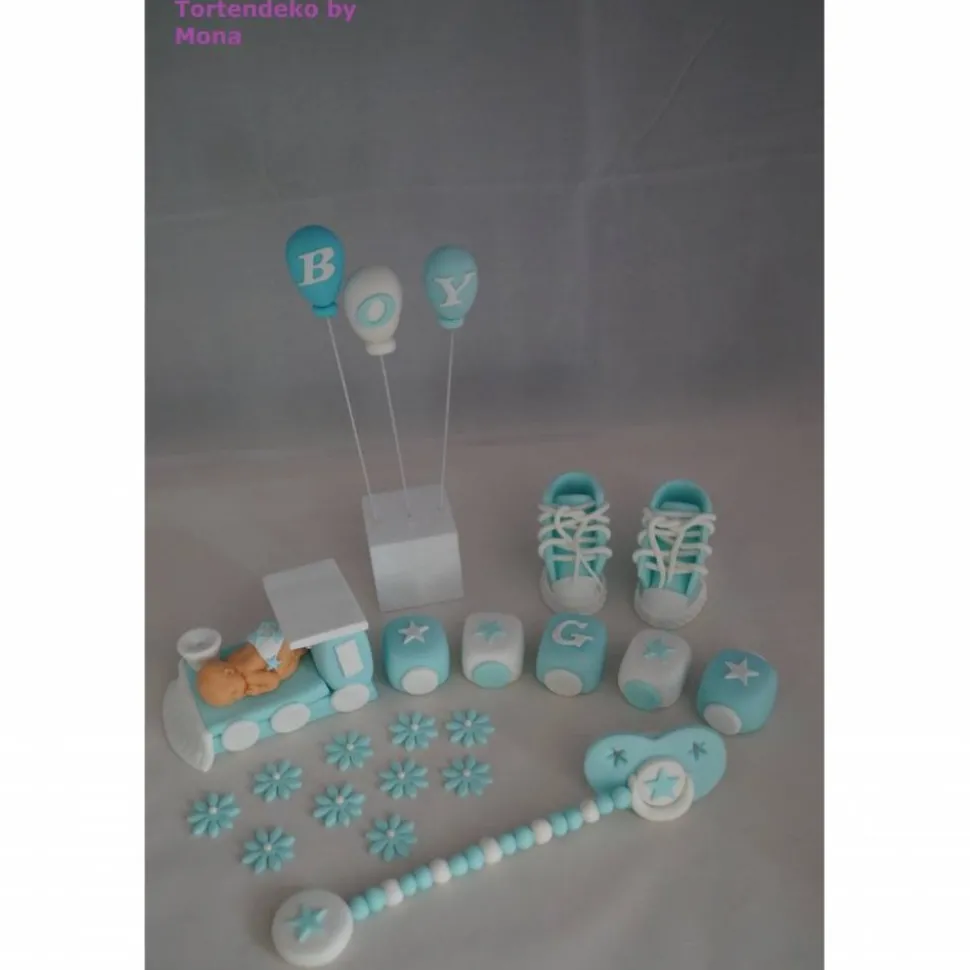 Eine Tortendeko für die Taufe, Geburt,Geburtstag,Zug mit Namen,Schuhe, Schnuller,Blumen und Ballons,der Styropor Würfel gehört nicht mit zum Angebot wo die Ballons drin stecken. Kann auch für ein Mädchen gemacht gemacht werden.