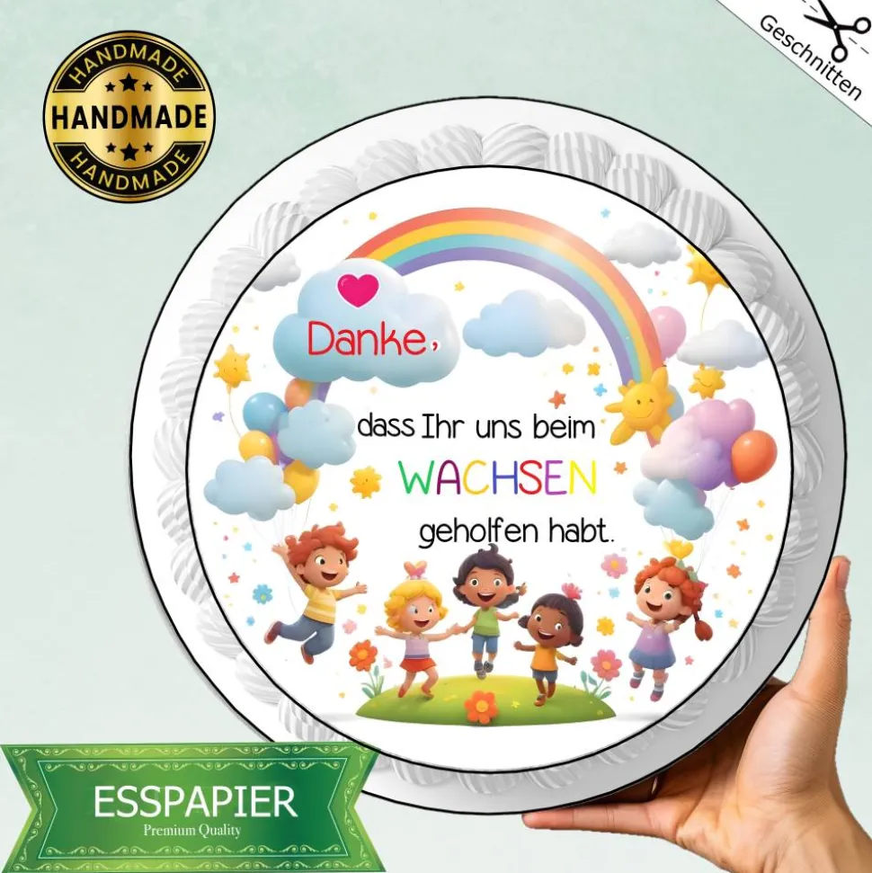 Der Tortenaufleger ist der perfekte Dank an die Kindergärtner und versüßt den Abschied mit einem tollen Kuchen.