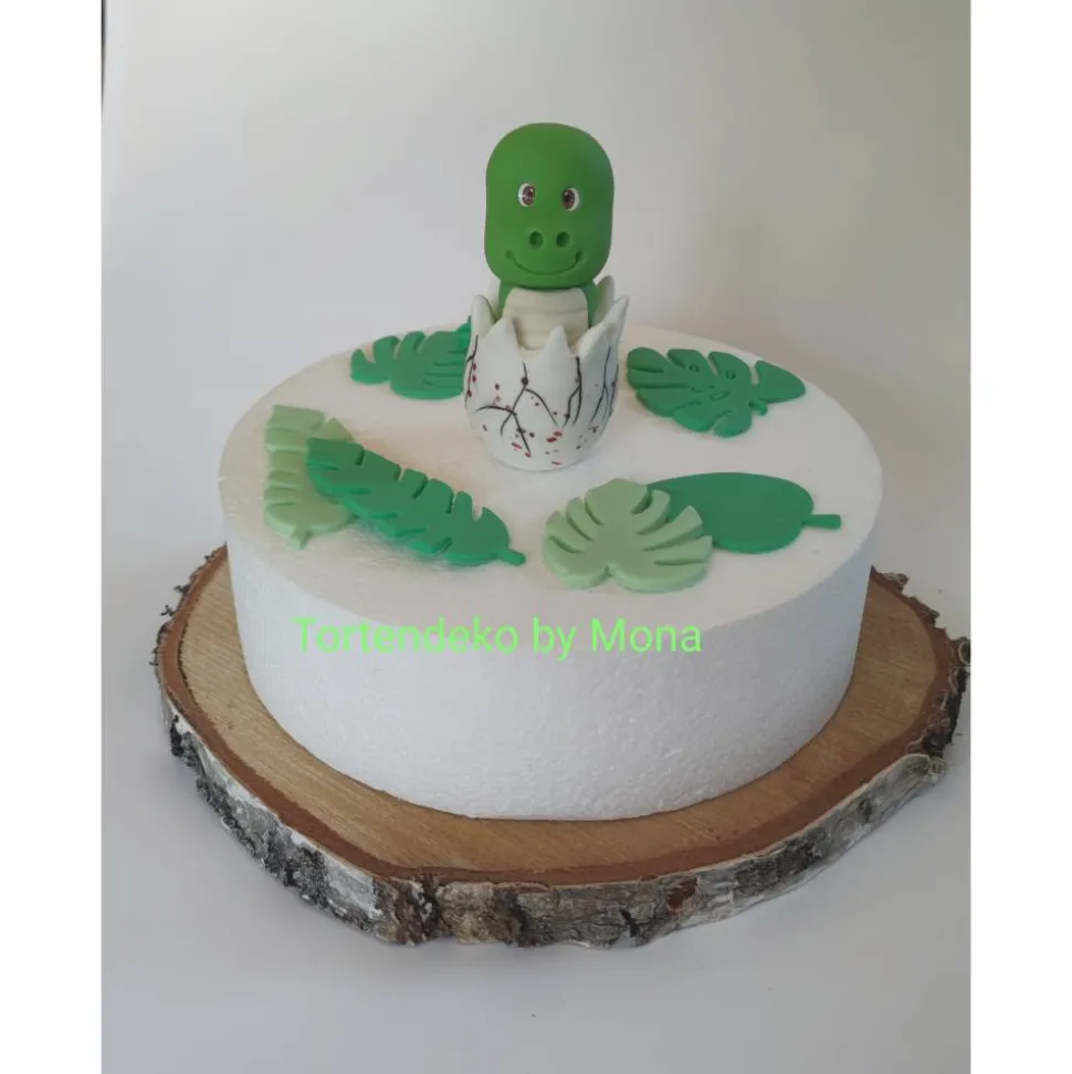Hier bekommt ihr den süßen Dino Dinolino aus den Ei mit Blätter.