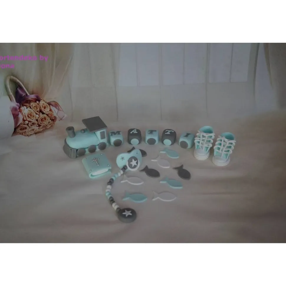 Eine Tortendeko für die Taufe,Geburt,Geburtstag,Zug mit Namen. Kann auch für ein Mädchen gemacht werden.