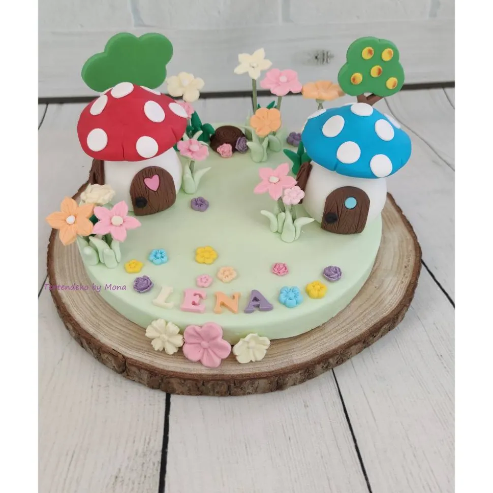 Tortendeko Tortentopper Geburtstag Feendorf  Feen Feenlandschaft Schlumpfendorf