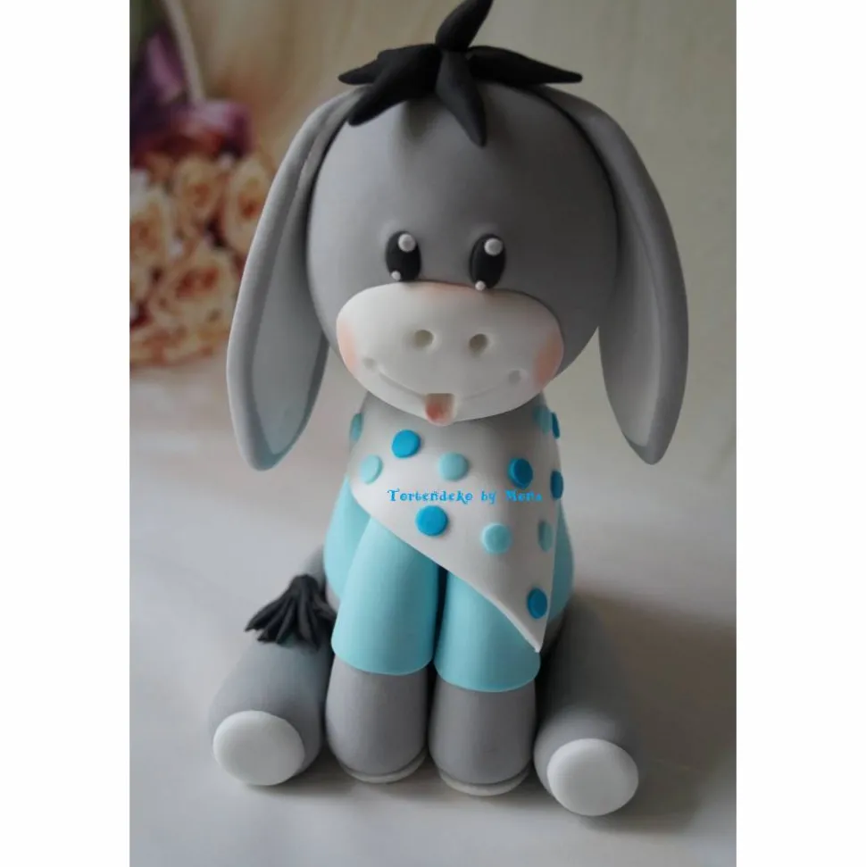 Eine Tortendeko für die Geburt, Geburtstag, Taufe ein Esel. Die Farben können auch geändert werden, damit man ihn auch für ein Mädchen nehmen kann.