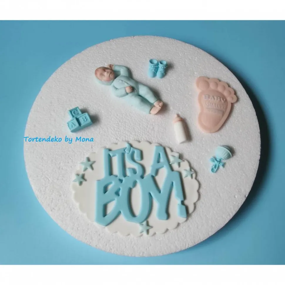 Hier bekommt eine ganz süße Tortendeko für die Geburt , Babyparty . Dies gibt es auch für ein Mädchen.
