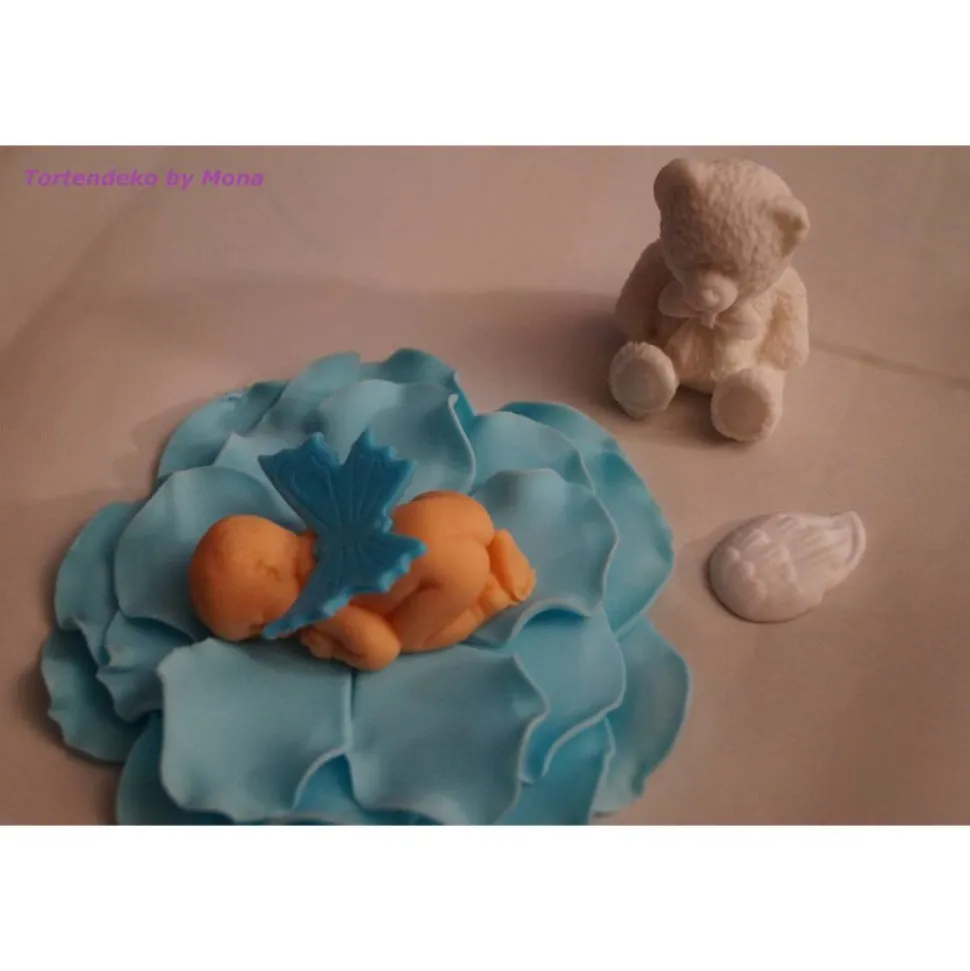 Die Figuren sind aus Fondant (Zuckermasse) mit Lebensmittelfarben hergestellt und sind durch Zugabe der Cellulose hart.