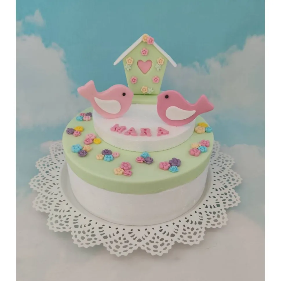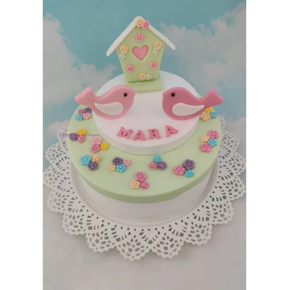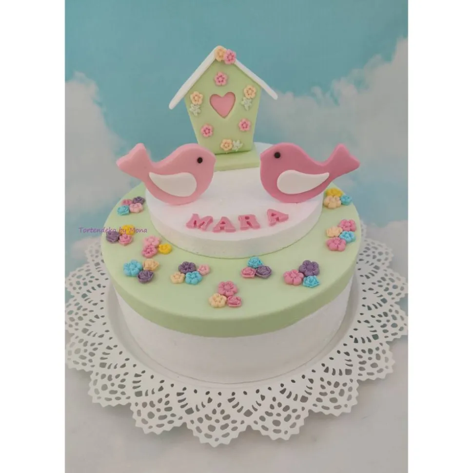 Hier bekommt hier ein Set mit Vogelhaus und Vögel zur GEBURT, TAUFE, GEBURTSTAG. Im Set enthalten sind 2 Vögel, das Vogelhaus , den Name und jede Menge Blümchen .