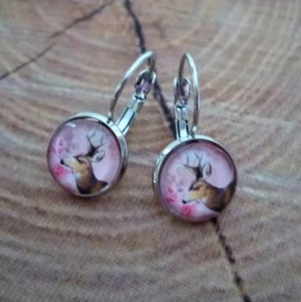 Glascabochons mit Hirschmotiv, 12 mm Durchmesser