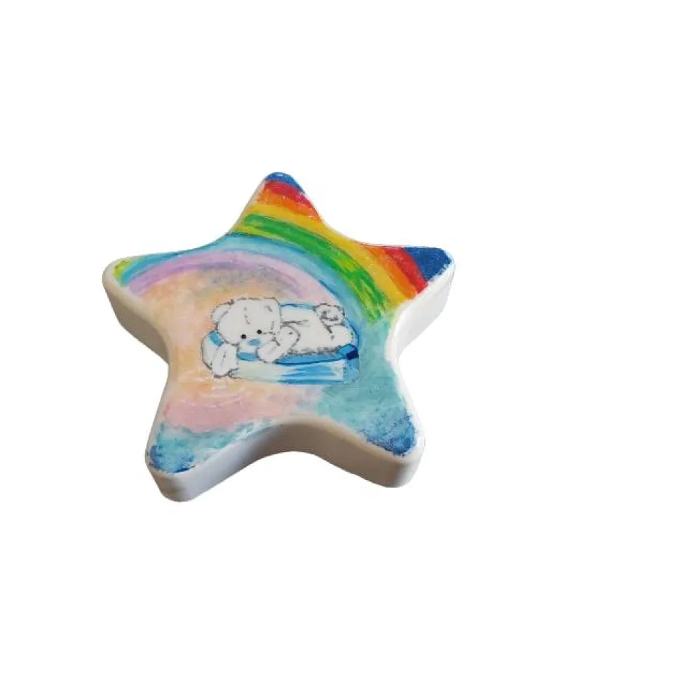 Die reliefgegossene Gestaltung verleiht diesem Stern (10cm) eine einzigartige Textur, während die sorgfältige Handbemalung mit Acrylfarben jedes Detail zum Leben erweckt. Jeder Strich erzählt eine Geschichte der Liebe und Erinnerung an die kostbaren Momente, die mit dem verlorenen Liebling geteilt wurden.
