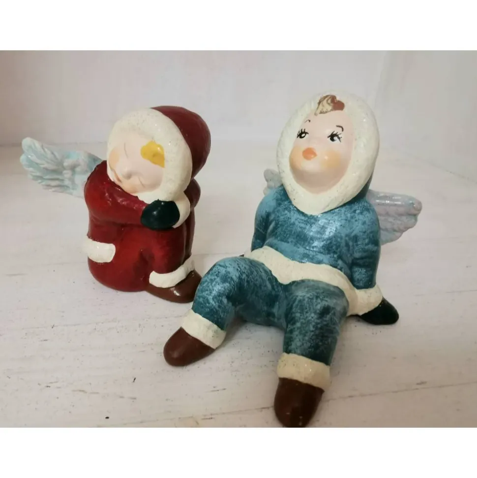 Die Winterengel sind aus Keramik und ca 7cm hoch. Bemalt hab ich sie mit Liebe zum Detail, verwendet hab ich dafür Acrylfarben und abschließend zweimal wetterfest versiegelt. Die Flügel sind mit Glitzer versehen, das macht diese Figuren zu einer wunderschönen Weihnachts-Winterdeko.