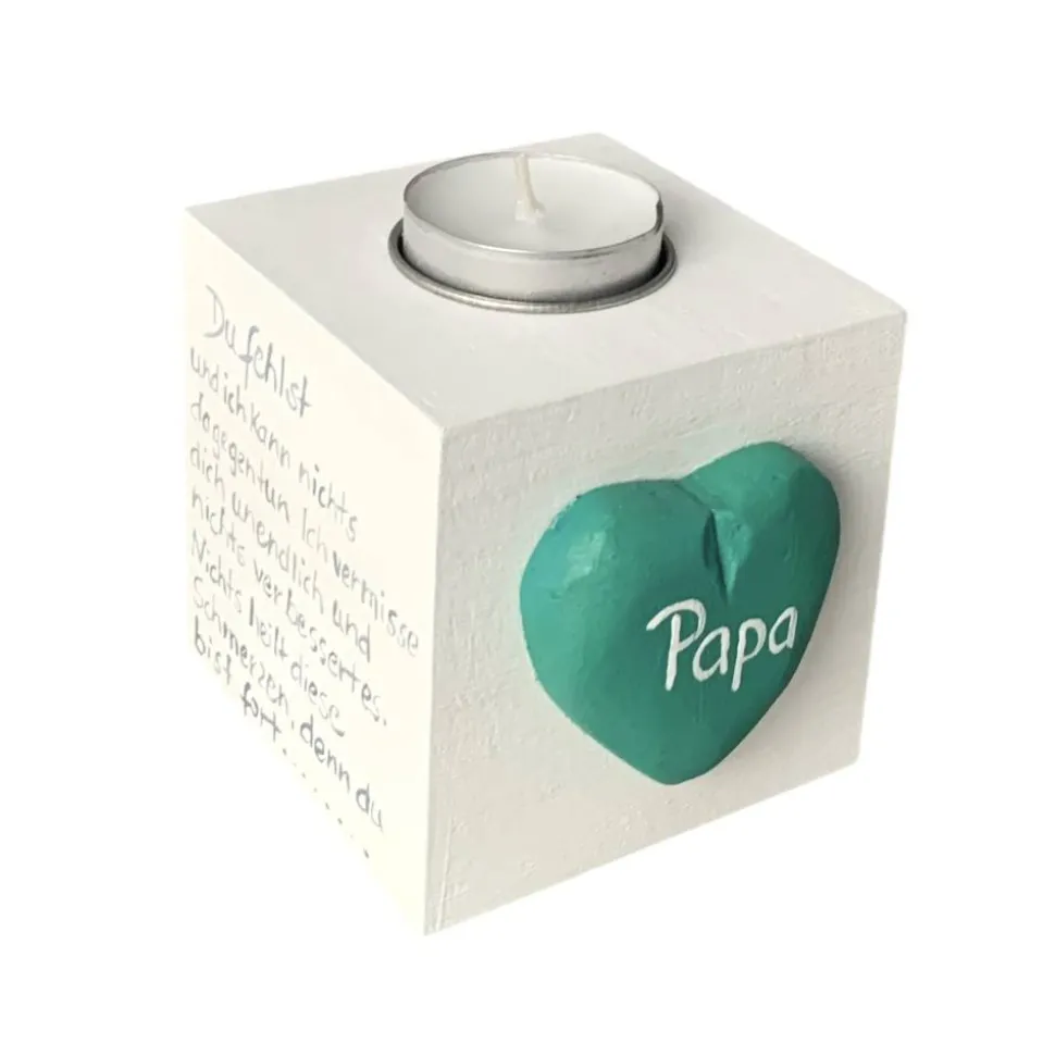 Dieser Kerzenhalter ist ein liebevolles Erinnerungsstück, das Licht und Trost spendet – perfekt geeignet als Geschenk zur Erinnerung oder als persönliches Trauerlicht.