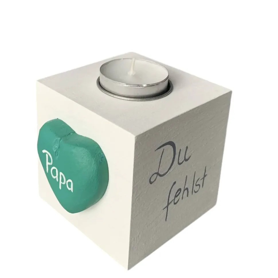 Ein individuell bemalter Kerzenwürfel ist ein einzigartiges Geschenk und eine bleibende Erinnerung.Jeder Kerzenwürfel wird nach dem Kauf speziell für dich bemalt und kann mit Namen, Daten sowie christlichen oder persönlichen Versen personalisiert werden. Deine Farbenwünsche werden gerne berücksichtigt, sodass dein Kerzenhalter ganz nach deinen Vorstellungen gestaltet wird.