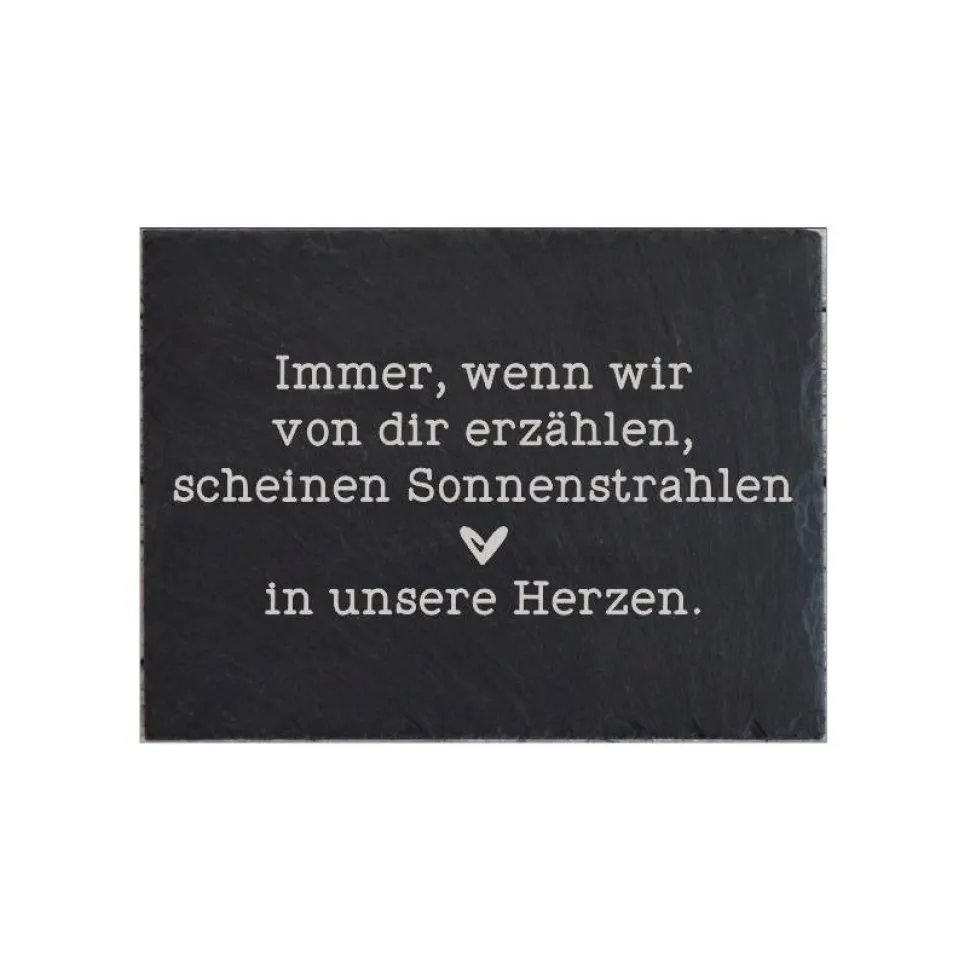 Sie möchten auf besondere Art und Weise an einen lieben Menschen erinnern, den Sie verloren haben? Mein Grabschild mit Gravur macht genau das für Sie möglich. Das Grabschild kann ergänzend zu einem Grabstein oder Kreuz aufgestellt werden. Es wird aus reinem Schiefer hergestellt, ist ausgesprochen robust und kann damit bedenkenlos auf Dauer im Freien eingesetzt werden.