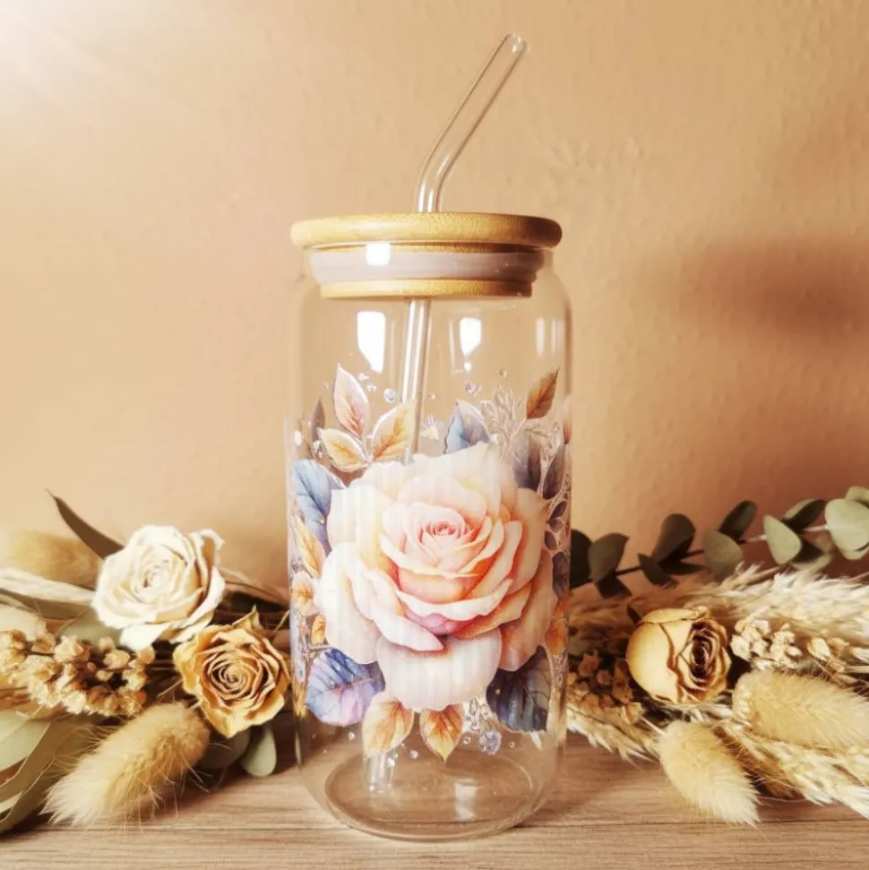 Das Glas hat ein Fassungsvermögen von 470ml und es wird mit einem Glasstrohhalm, Bambusdeckel und einer Bürste zum reinigen des Strohhalm geliefert.