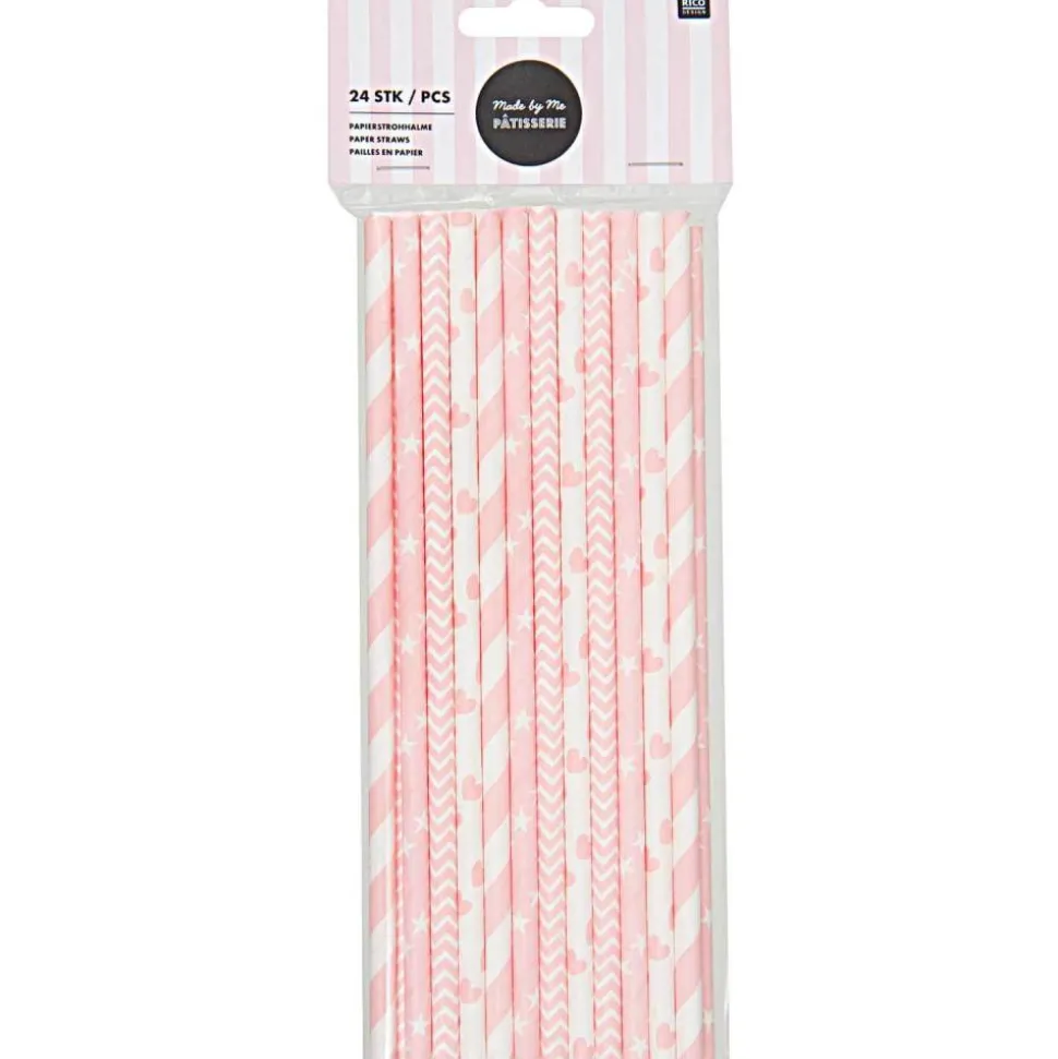 Die 24 Trinkhalme sind niedlich gestaltet. So enthalten die Muster auf den Papierstrohhalmen Herzen, Sterne oder auch Streifen. Tolle Dekoration für eine Mädchenparty.
