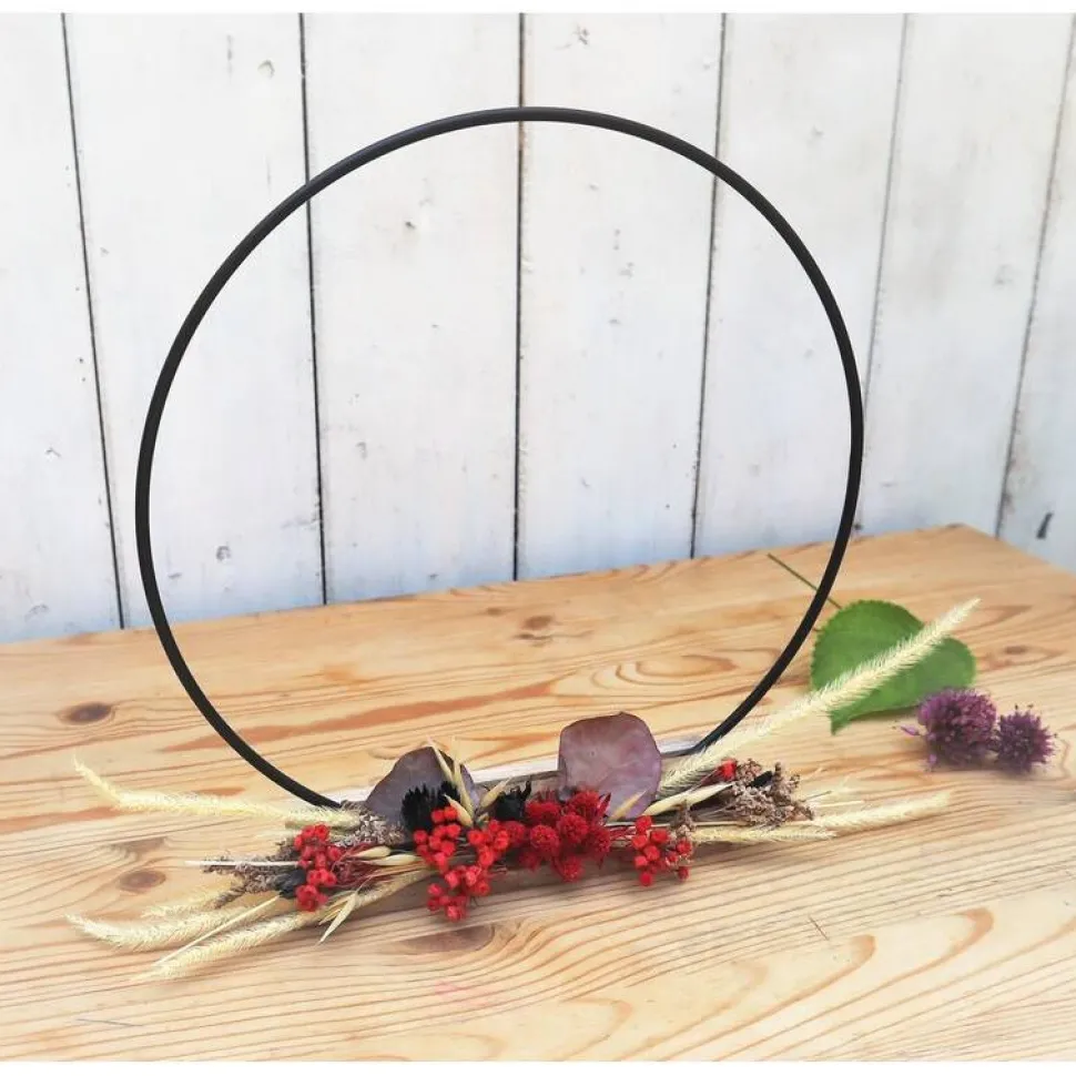 Material: Metallreifen, Trockenblumen, Holz
