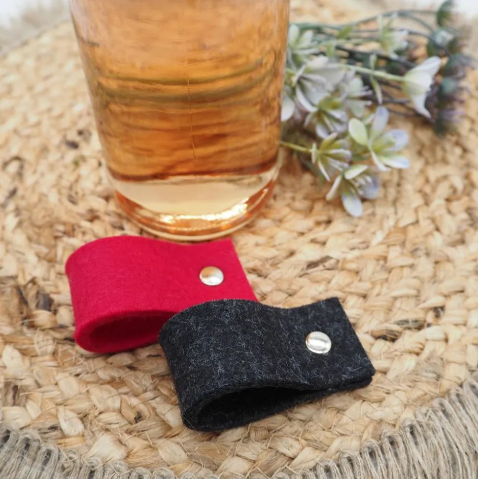 Verleihe jeder Weinflasche das gewisse Extra mit diesem hochwertigen Tropfschutz aus 100% Wollfilz. Das 4er Set ist nicht nur praktisch, sondern auch ein charmantes Geschenk für Weinliebhaber. Du kannst Dein Set individuell in Deinen Wunschfarben zusammenstellen. Wenn Du keine Farbe angibst, erhältst Du den Tropfschutz in zeitlosem Anthrazit. Für Rotwein empfiehlt sich besonders der anthrazitfarbene Filz, während die anderen Farben – hellgrau, rot, grün und magenta – perfekt zu Weiß- oder Roséwein passen.
