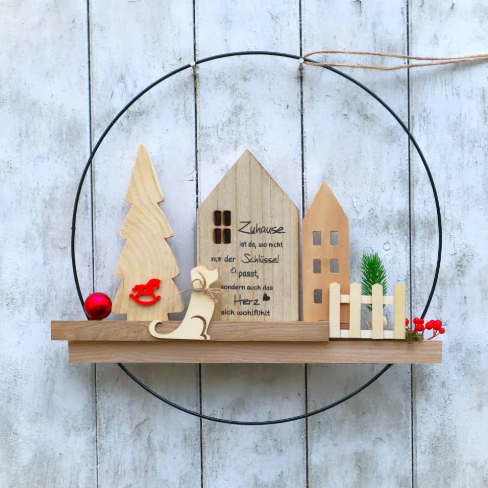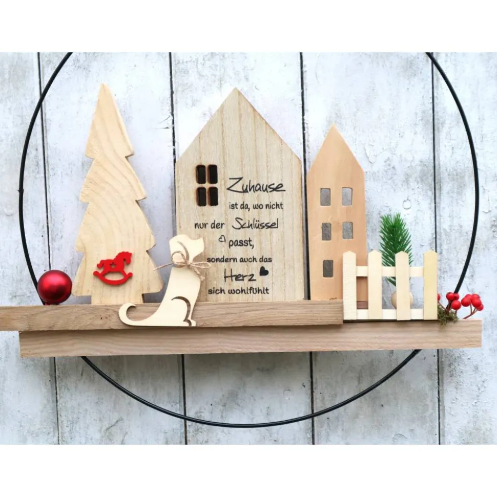 Material: Holz, Dekorationen, MetallringGröße: ca. 40 cm B, ca. 40 cm H, ca. 5 cm T