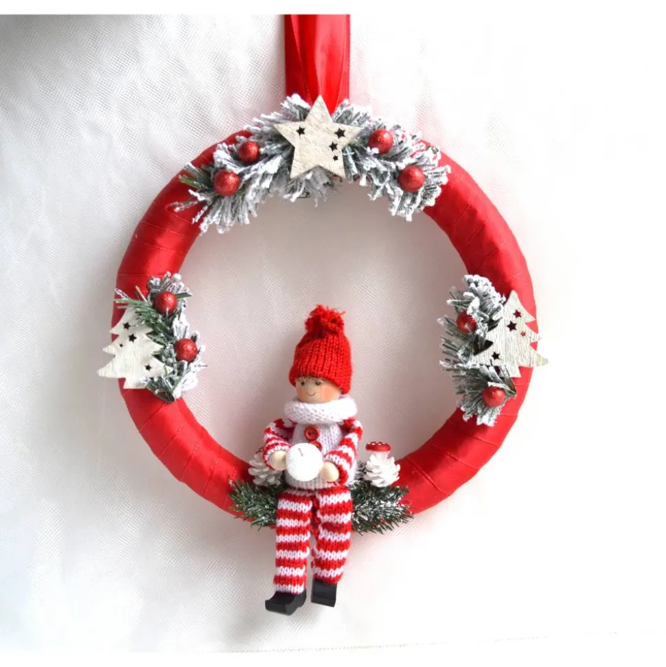 Tür-/Wandkranz rot-weiß mit Weihnachtspüppchen