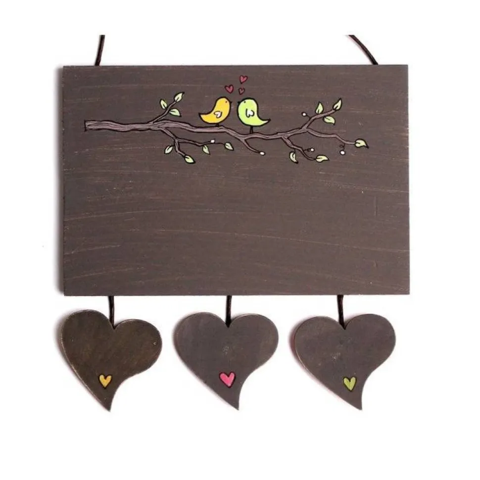 • Handbemalt mit zwei verliebten Vögeln auf einem Ast