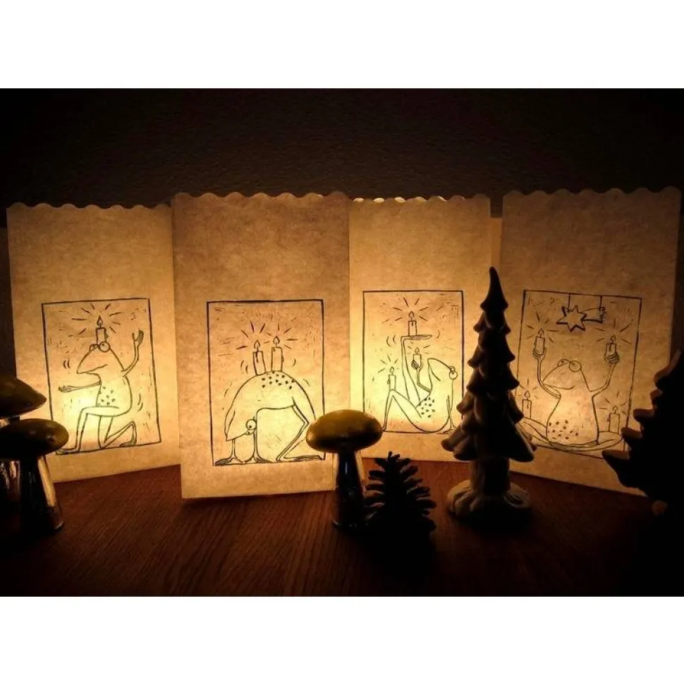 Die Tütenlichter sind jeweils etwa 26 x 15 x 9 cm groß und aus schwer entflammbarem, naturweißem Papier.