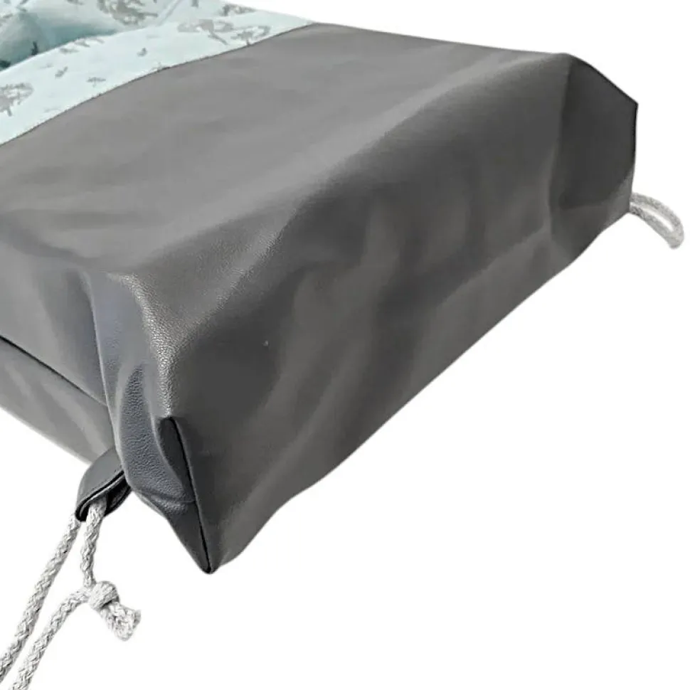 Super geeignet als Rucksack oder Festivaltasche, da er aus einem Robustem Kunstleder und einem festen Baumwollstoff besteht. Am Boden ist der Turnbeutel mit 6cm abgenäht und verleiht der Tasche so mehr Stand.
