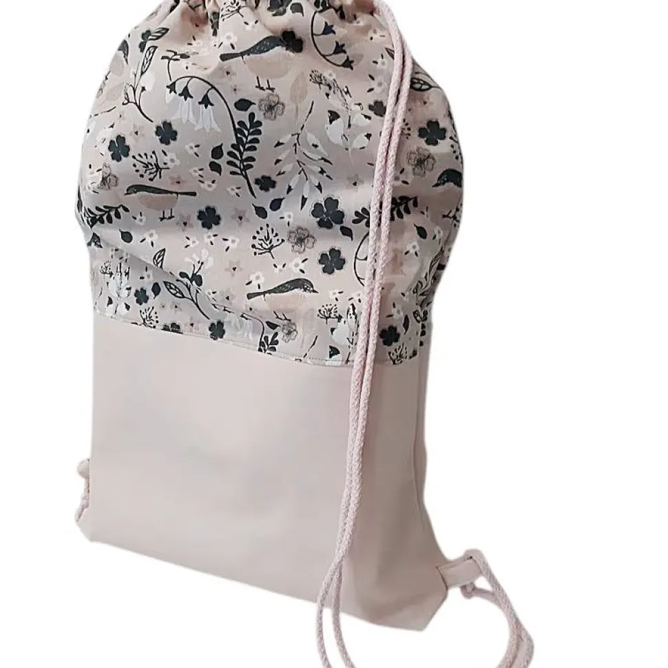 Super geeignet als Rucksack oder Festivaltasche, da er aus einem Robustem Kunstleder und einem festen Baumwollstoff besteht. Am Boden ist der Turnbeutel mit 6cm abgenäht und verleiht der Tasche so mehr Stand.