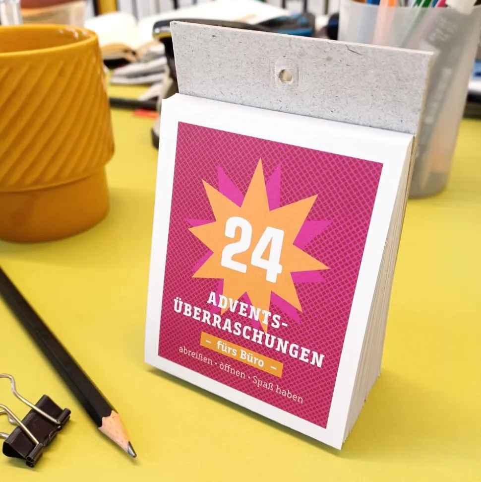 Starte mit dem Überraschungs-Büro-Adventskalender in eine humorvolle Adventszeit im Büro! Mit 24 kreativen und witzigen Aufgaben sorgt dieser Kalender für Freude, Teamgeist und eine Extraportion Schadenfreude im Arbeitsalltag. Von „Joker: Beine hoch“ über „Lebkuchen für alle“ bis zu „Monitor der Kollegen putzen“ – hier ist für jeden etwas dabei!