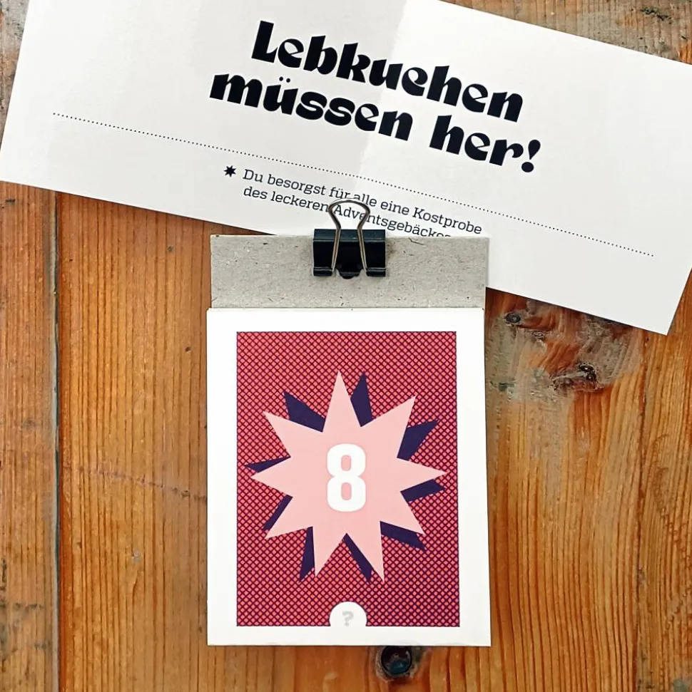 Humorvolle Herausforderungen bringen euch zum Lachen und fördern den Zusammenhalt. Kleine „Pflichten“ wie Blumen gießen oder Papiermüll entsorgen sorgen für Schmunzler und gute Laune. Kulinarische Überraschungen wie ein Obstteller oder eine Glühweinrunde machen den Advent noch leckerer!
