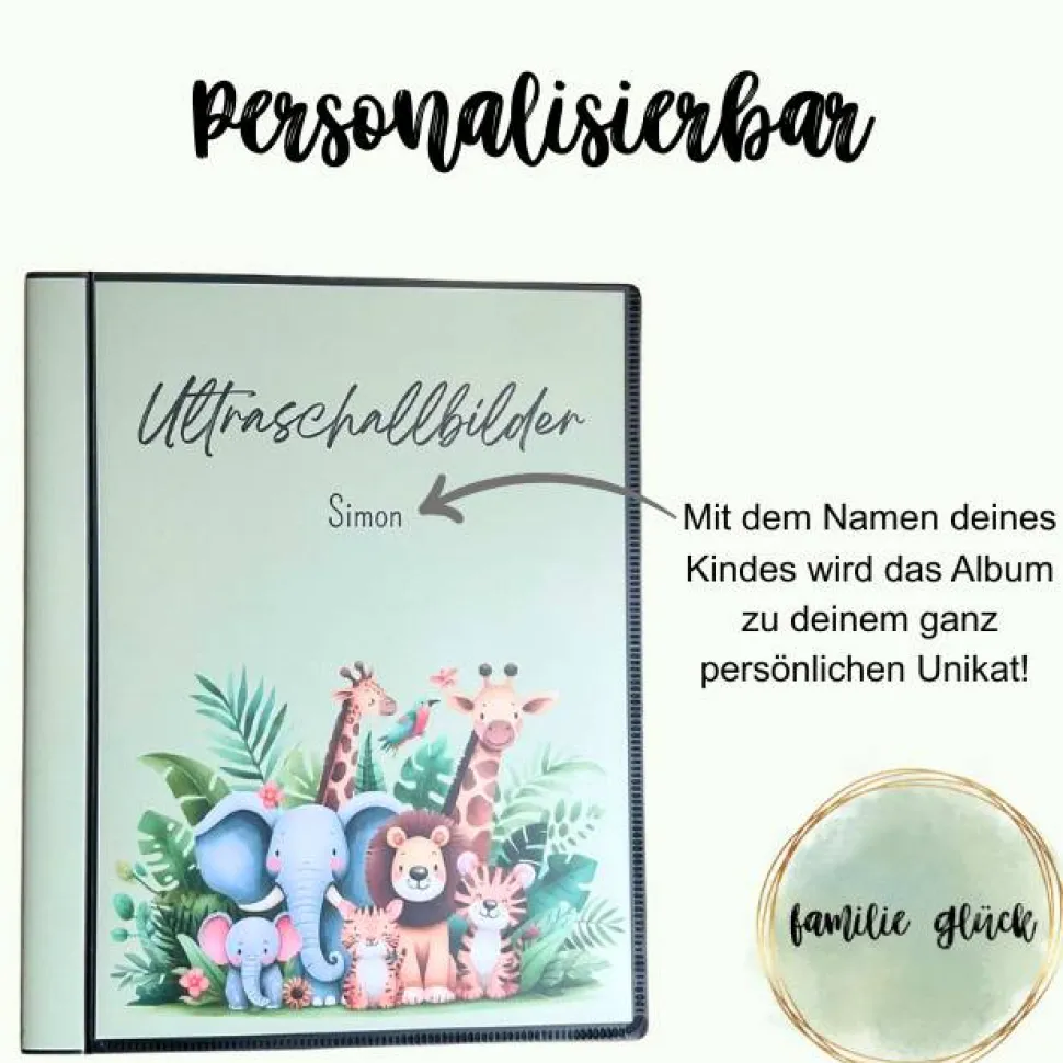 Das niedliche Dschungeldesign mit den gedeckten Farben spiegelt die Magie dieser ganz besonderen Zeit der Schwangerschaft wieder. Durch die Personalisierungsmöglichkeit wird es dein ganz persönliches Unikat.